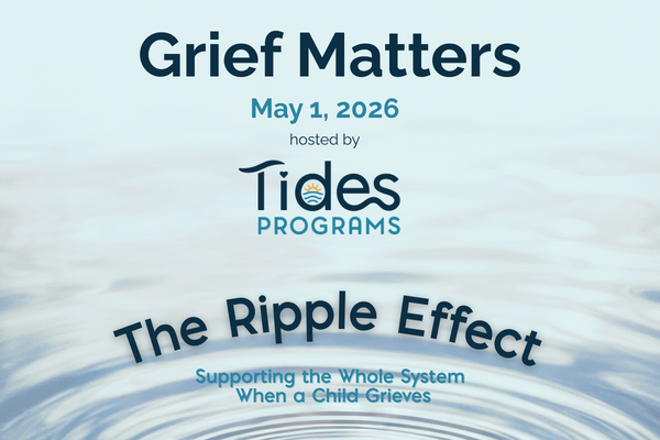 Join Tides at Grief Matters, a one-day educational seminar hosted by Tides. This year’s theme, The Ripple Effect: Supporting the Whole System When a Child Grieves, explores how grief impacts not just a child, but their family, school, and broader community. When a child experiences loss, the effects ripple outward. When we support the whole system, healing becomes more possible for everyone involved. Whether you work directly with children, support families, or are simply seeking to deepen your understanding of grief, we hope you’ll join us for this meaningful day.